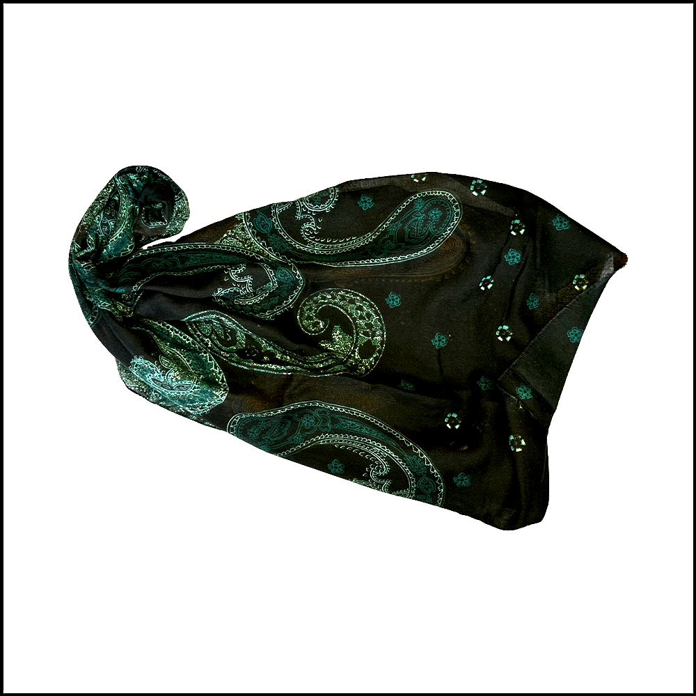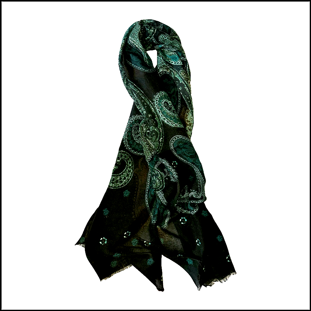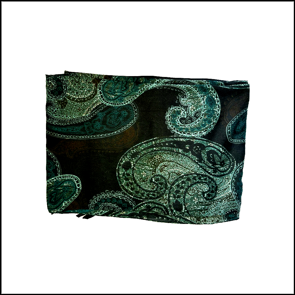 A beautifully patterned green scarf that blends elegance with a refreshing, nature-inspired charm.