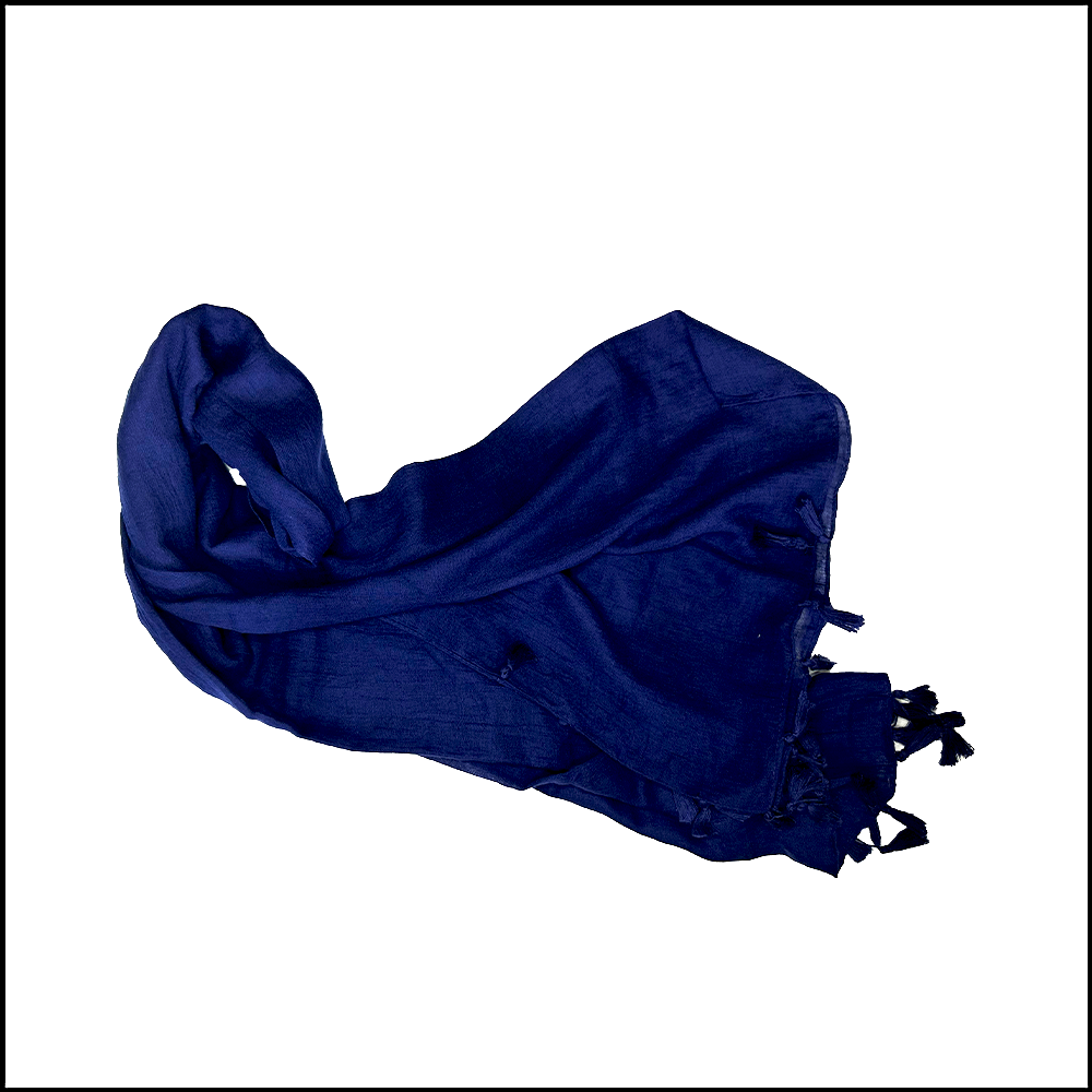 A rich solid blue scarf that brings depth, elegance, and a touch of calm to any outfit.