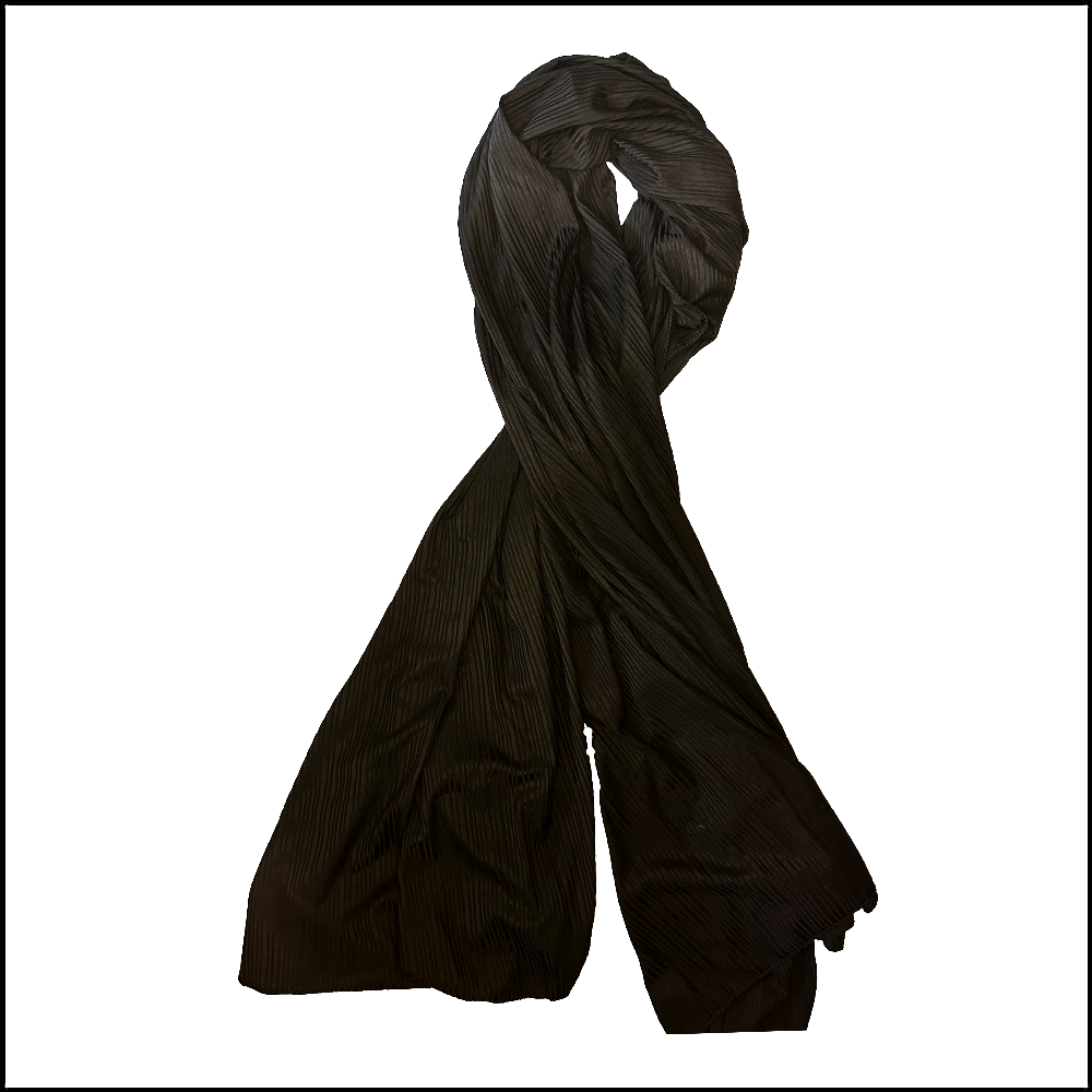 A classy black scarf enhanced with subtle textural lines — refined, elegant, and timelessly stylish.